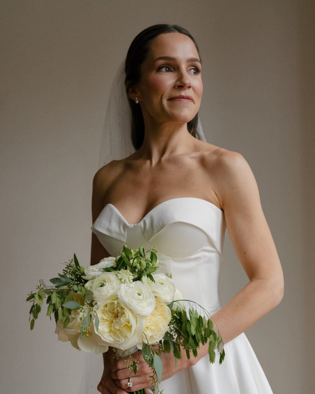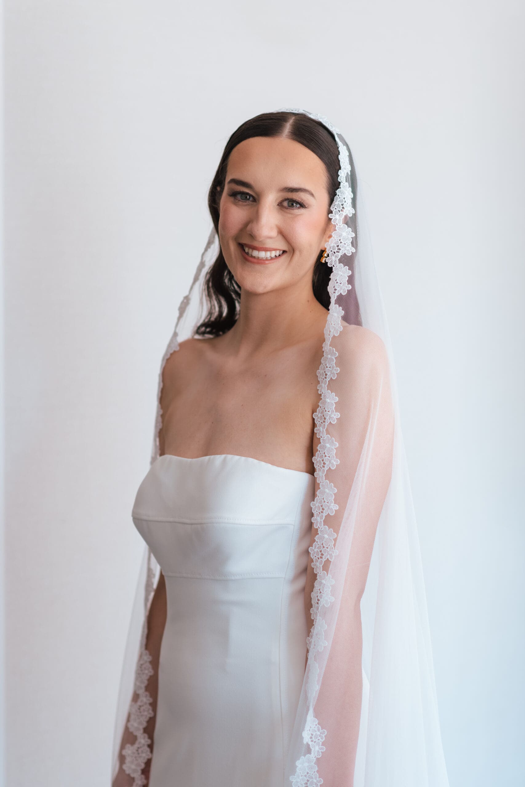 Paxton’s Elegant Cathedral Wedding Bridal Look paired luminous, soft glam makeup with hair down and a veil, creating a classic, timeless, and effortlessly elegant style for her cathedral wedding.