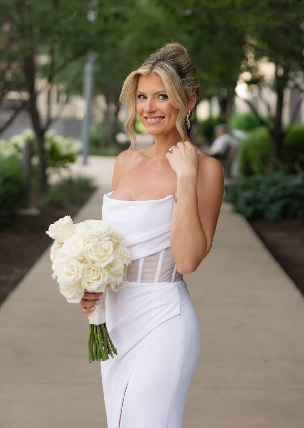 See Jacqueline’s stunning bridal glam featuring Hollywood-inspired waves and flawless makeup! Explore her elegant wedding hairstyle and radiant look that made her Chicago wedding unforgettable.